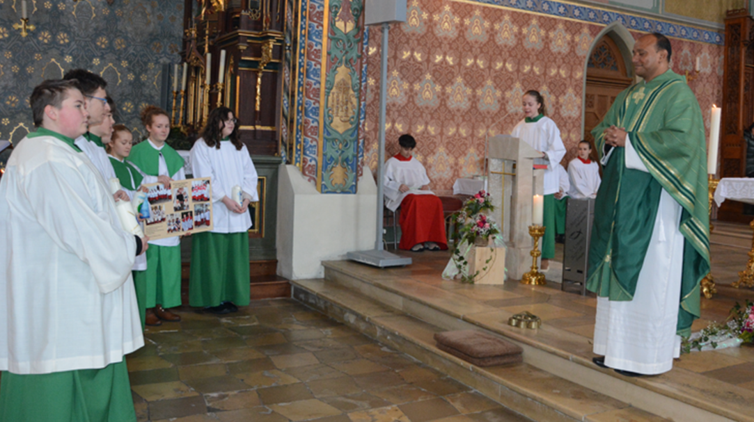 In dankbarer Rückschau würdigte Birgit Rigal die beiden Pastoralreisen in seine indische Heimat im Januar 2024 und Januar 2025, die Pfarrer Biju organisierte und begleitete. Besonders beeindruckend war die herzliche Gastfreundschaft, die seine Familie den Teilnehmern entgegenbrachte. Ebenso bleiben die Wallfahrten nach Altötting sowie zahlreiche gemeinschaftliche Unternehmungen mit den Ministrantinnen und Ministranten als lebendige Zeichen gelebter Verbundenheit in guter Erinnerung.