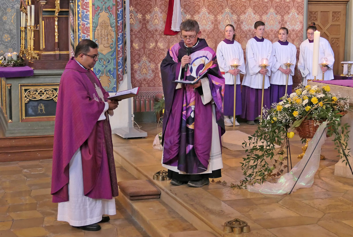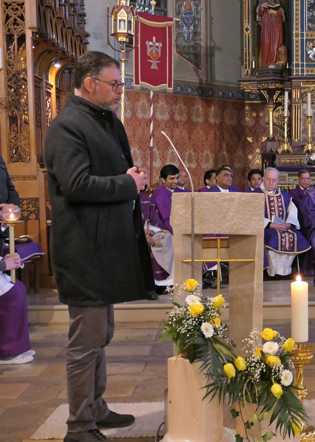 Der Kemptener Dekan, der die feierliche Amtsübergabe leitete, hieß Pfarrer Sanoj herzlich willkommen. Besonders erfreut zeigte er sich über die Anwesenheit zahlreicher indischer Mitbrüder, deren Zusammenhalt ein eindrucksvolles Zeugnis der weltumspannenden Verbundenheit der Kirche ist.